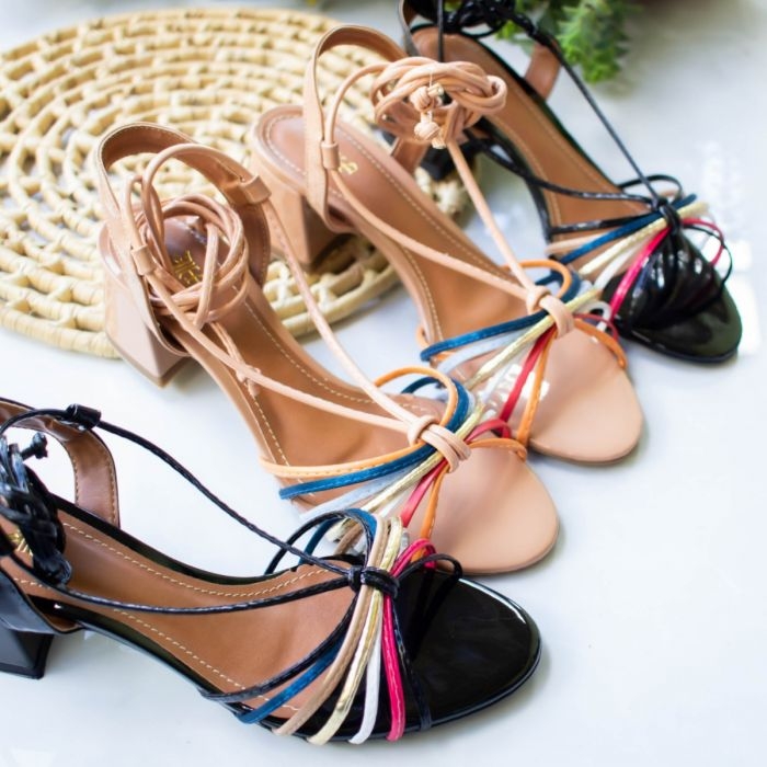 Sandália Salto Bloco Tiras Coloridas Amarrar